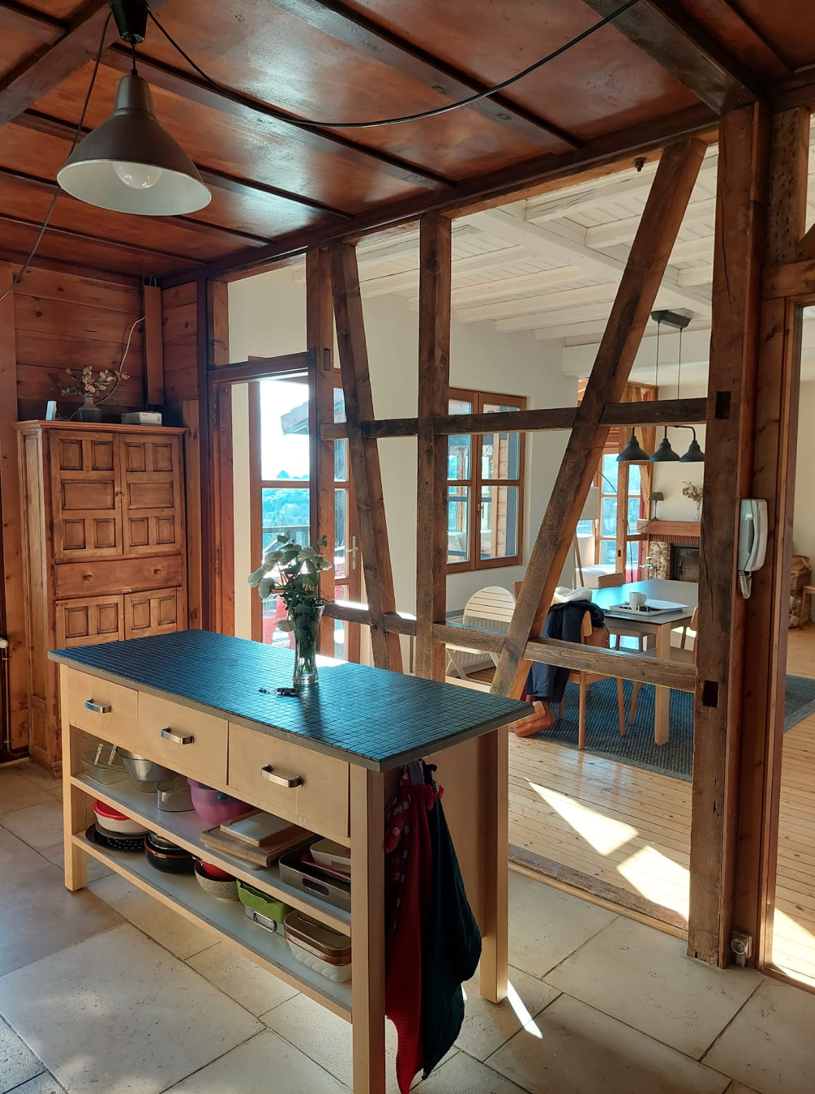 • l’îlot central offre un espace repas chaleureux où toute la famille peut se retrouver