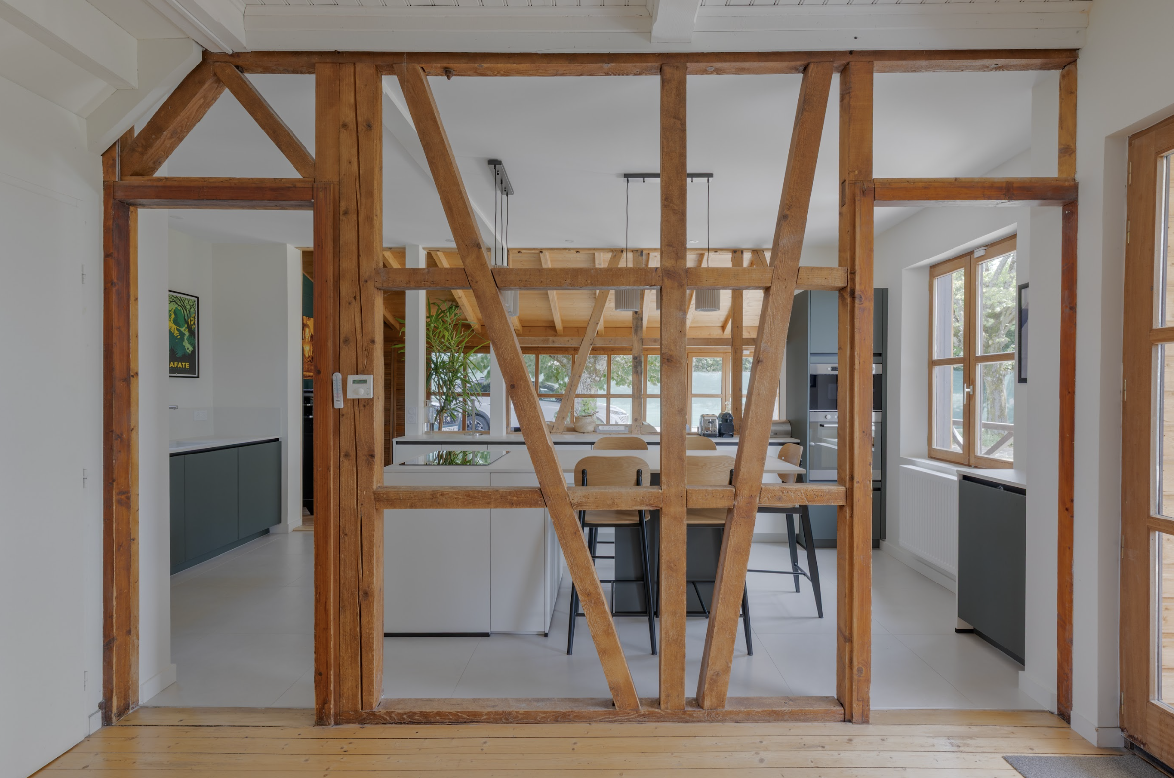 Ce joli chalet bénéficie d’une lumière naturelle exceptionnelle et d’une vue splendide. Pourtant, l’ancienne cuisine, sombre et datée, ne permettait absolument pas d’en profiter.