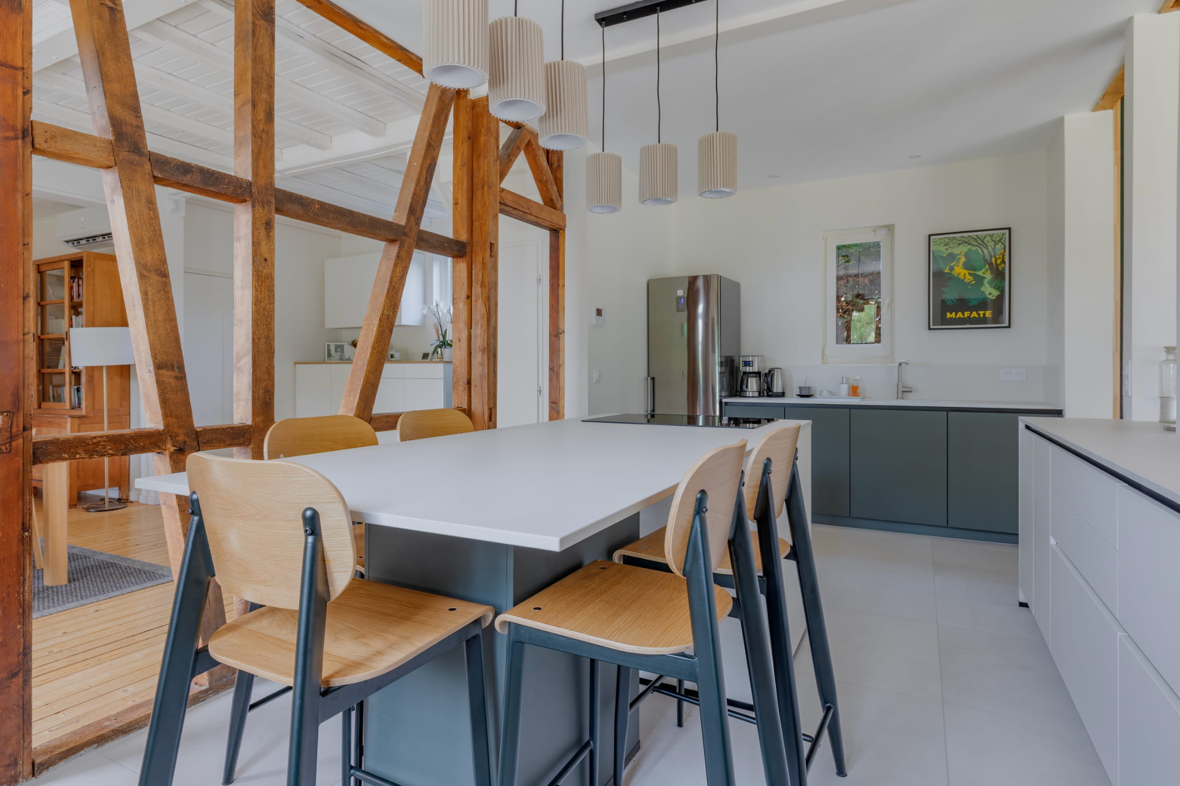 La cuisine a été entièrement repensée pour s’adapter aux habitudes de vie d’une famille de cinq et retrouver une vraie fluidité au quotidien.